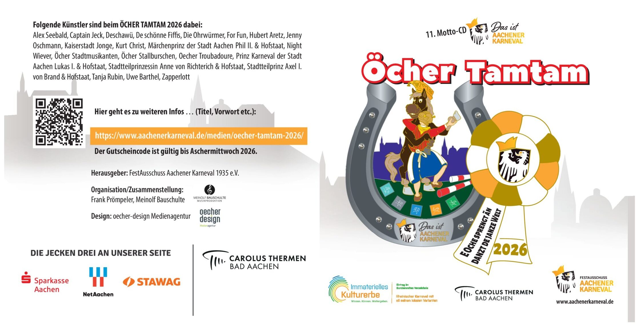 | Märchenprinzen-Medley 2015-2017 1. Wo ist der Märchenprinz (trad./T.: M. Bauschulte, F. Prömpeler) Anton I. Neßeler & Hofstaat 2015 / 2. Öcher Kengerfastelovvend (M.: A. Kandel / T.: S. Weidemüller / Neutext: F. Prömpeler) Paul III. Hahn & Hofstaat 2016 / 3. Partytime mit Luc (M.: A. Kandel / T.: S. Weidemüller / Neutext: F. Prömpeler) Luc I. Piwko & Hofstaat 2017 |