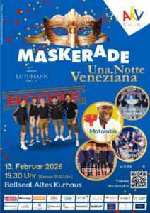 Der Senat des Aachener Karnevalsvereins lädt zu einem Abend ein, der bereits beim Betreten des Ballsaals seine Magie entfaltet. Mit MASKERADE – Una Notte Veneziana entsteht am 13. Februar 2026 ein Fest, das Tradition, Eleganz und moderne Unterhaltung auf besondere Weise verbindet.